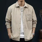 Beige Gestreept Overhemd voor Heren | Casual Overshirt | Relaxed Fit met Borstzak