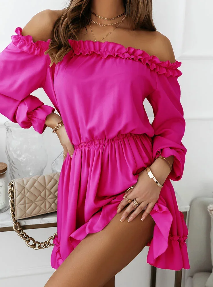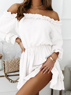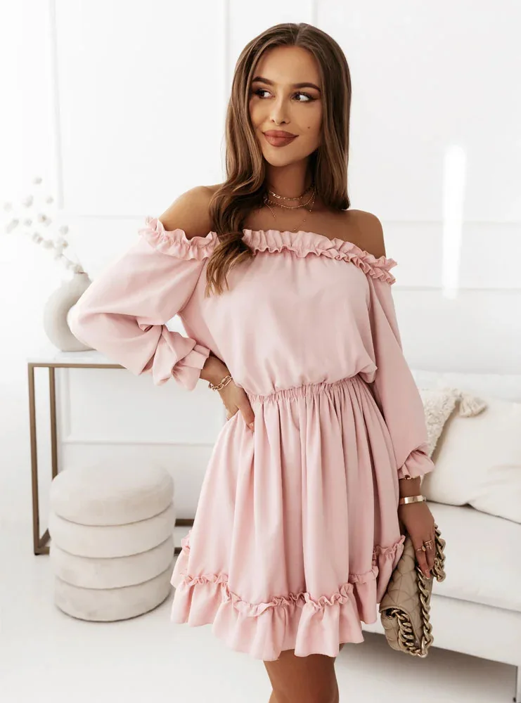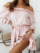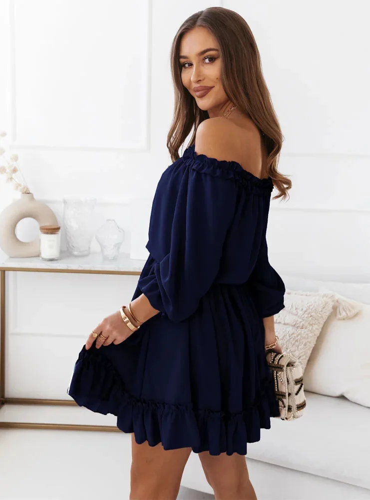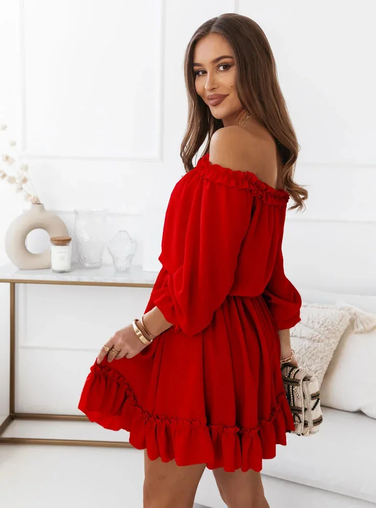 De Bella Dress is het ultieme symbool van vrouwelijke charme. Deze off-shoulder jurk met sierlijke ruches en een elastische taille creëert een speelse, romantische look die perfect is voor zonnige dagen, vakanties of casual dates. De luchtige stof en zwierige rok zorgen voor ultiem comfort én stijl.