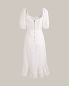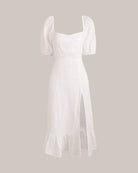 De Belle Dress is een dromerige jurk met een vrouwelijke flair, perfect voor zonnige dagen en romantische gelegenheden. Met haar charmante puffmouwen, vierkante halslijn en speelse hoge split straalt deze witte midi-jurk tijdloze elegantie uit. De luchtige stof en subtiele structuur zorgen voor een licht en comfortabel draaggevoel.