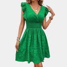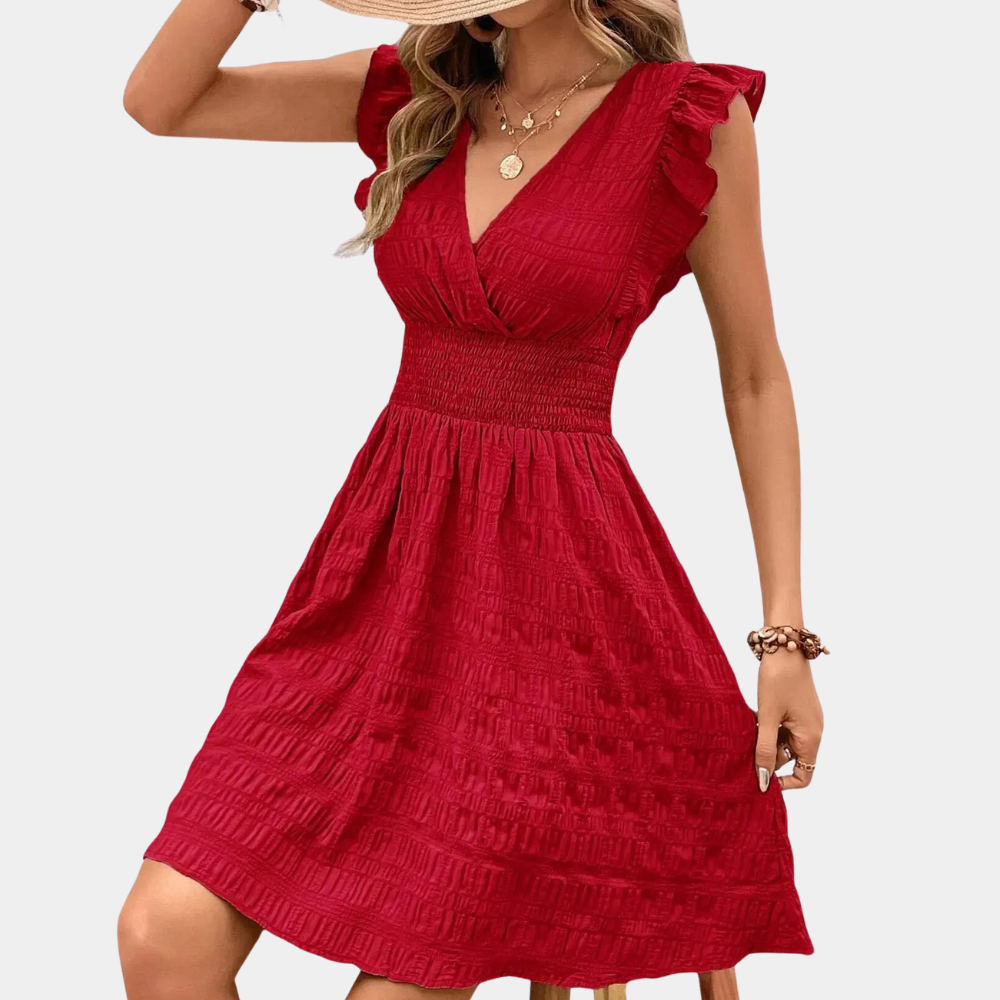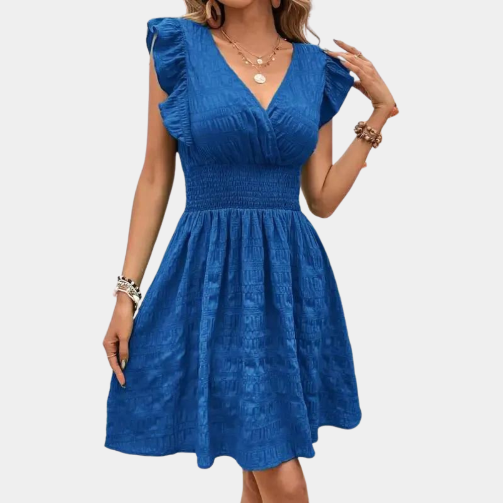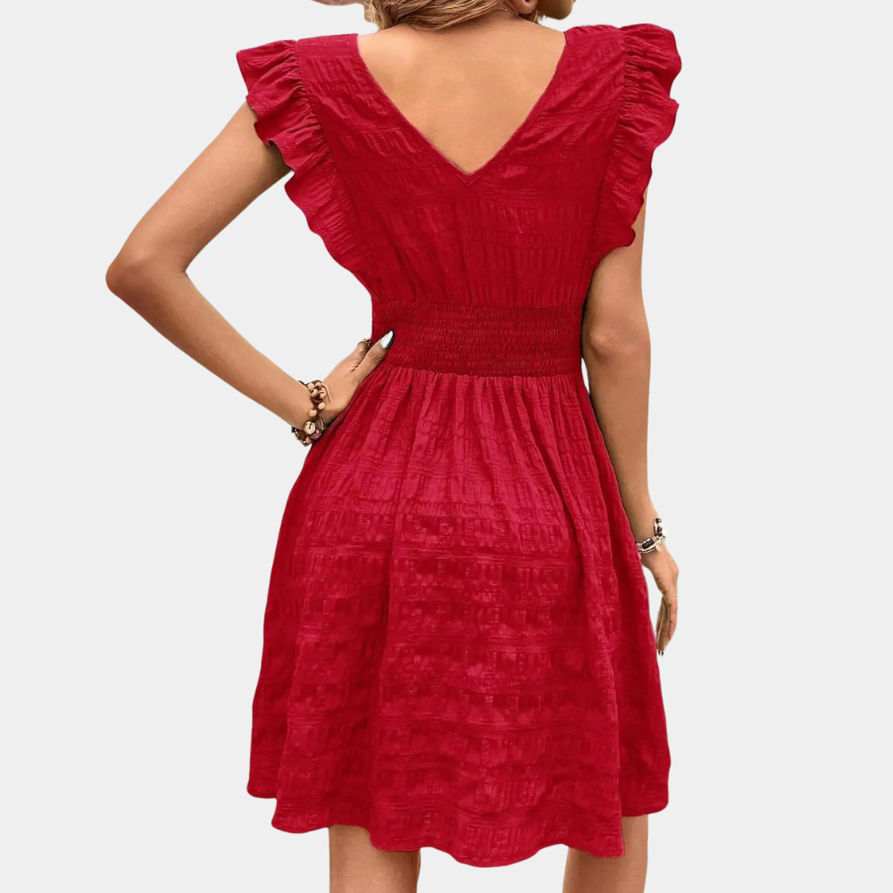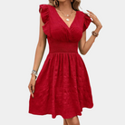 De Belle Jurk is de perfecte combinatie van vrouwelijke elegantie en speelse charme. Met haar verfijnde kanten textuur, diepe V-hals en flatterende tailleaccent creëert deze jurk een tijdloos silhouet. De licht uitlopende rok en delicate schouderdetails zorgen voor een romantische touch. Verkrijgbaar in levendige kleuren die elke gelegenheid opfleuren.