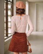 Combineer de Belle Lace Top met een A-lijn minirok en knielaarzen voor een klassieke Parisienne-look. Voeg een baret en een crossbodytas toe om het geheel compleet te maken. Ideaal voor een dagje uit, een date of een creatieve werkdag.