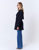 De Belted Utility Trench is een moderne interpretatie van de klassieke trenchcoat. Met zijn flatterende tailleceintuur, diepe navy tint en praktische details zoals epauletten en steekzakken, biedt deze jas een perfecte balans tussen stijl en functionaliteit. Ideaal voor het overgangsseizoen en dagelijks gebruik.
