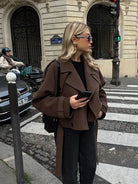 De Berlin Cropped Coat is een stijlvol statementstuk dat moeiteloos moderne elegantie uitstraalt. Met zijn korte, boxy pasvorm en gestructureerde revers combineert deze jas klassieke elementen met een hedendaagse twist. De rijke chocoladebruine kleur voegt diepte toe aan elke outfit, terwijl de stevige wolmix zorgt voor warmte en comfort.