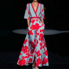 Bloom Set | V-Hals Top & Uitlopende Rok | Grafische Rode Bloemenprint