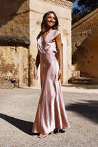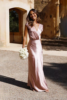 Blush Satin Dress | V-Hals Maxi | Romantische Zachtroze Glans