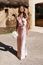 Draag de Blush Satin Dress met nude hakken en subtiele parelaccessoires voor een verfijnde look. Voeg een clutch in metallic tint toe en draag je haar los in zachte waves voor een romantische uitstraling.