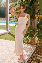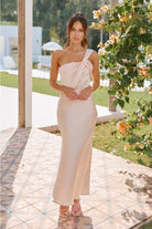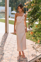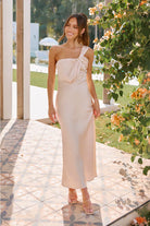 Blush Serenity Dress | One-Shoulder Satijn | Maxi met Split