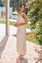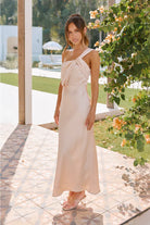 Combineer de Blush Serenity Dress met nude hakken en parel- of gouden sieraden voor een romantische, verfijnde look. Perfect voor bruiloften, gala’s of formele diners.