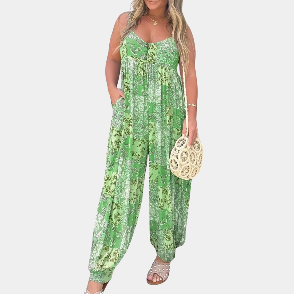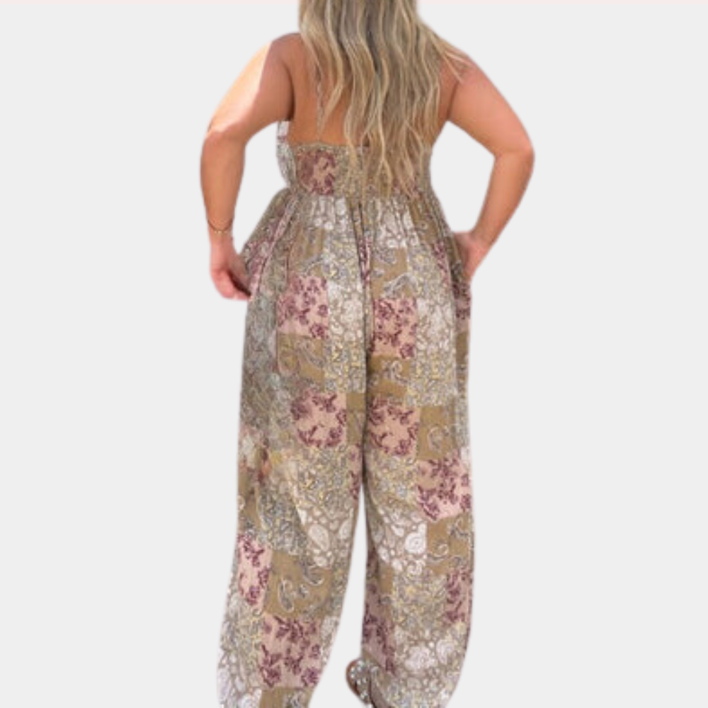 Combineer de Boho Breeze Jumpsuit met sandalen en een gevlochten tas voor een moeiteloze strandlook. Voeg grote zonnebrillen en een denim jasje toe voor een trendy festivaloutfit. Perfect voor vakantie, stadswandelingen of gewoon loungen in stijl.