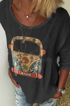 Het Boho Travel Shirt is een speels en comfortabel item met een opvallende vintage busprint die meteen een zomers gevoel oproept. De losse fit, ronde hals en zachte stof maken deze top ideaal voor ontspannen dagen. Verkrijgbaar in diverse vrolijke kleuren zoals wit, blauw, groen, geel, roze en zwart – perfect voor elke mood.