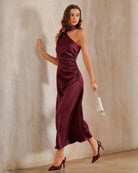 Bordeaux Luxe Dress | Satijnen Halterjurk | Asymmetrische Elegantie