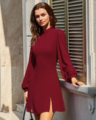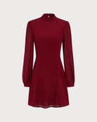 Bordeaux Muse Dress | Hoge Hals & Chiffon Mouwen | Elegant & Tijdloos