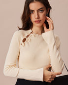 Bow Detail Top | Strikaccent & Cut-Out | Crèmekleurige Chic