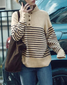 Breton Knit Sweater | Gestreept Design | Kraag met Knopen