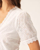 Broderie Top | Katoenen Elegantie | V-Hals met Kanten Details