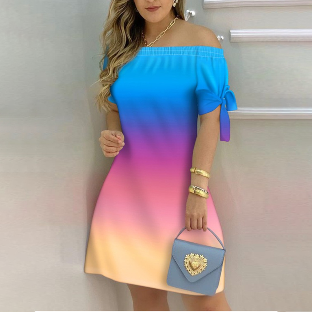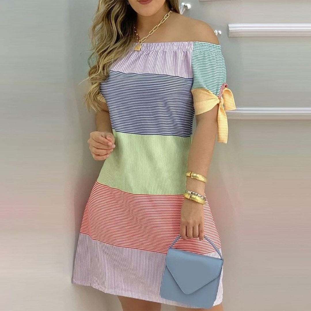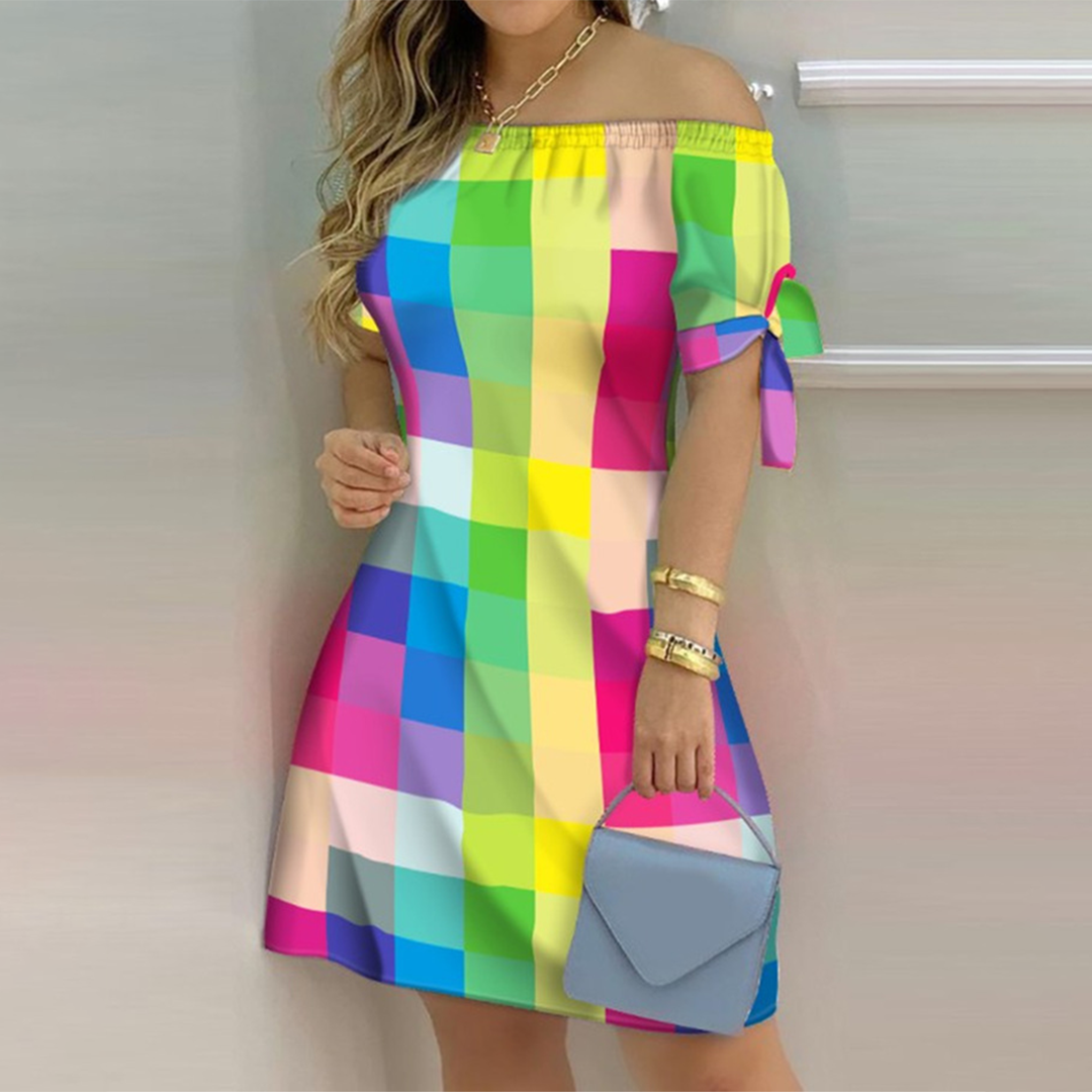 Candy Pop Jurk | Off-Shoulder Mini | Kleurrijke Patchwork Look