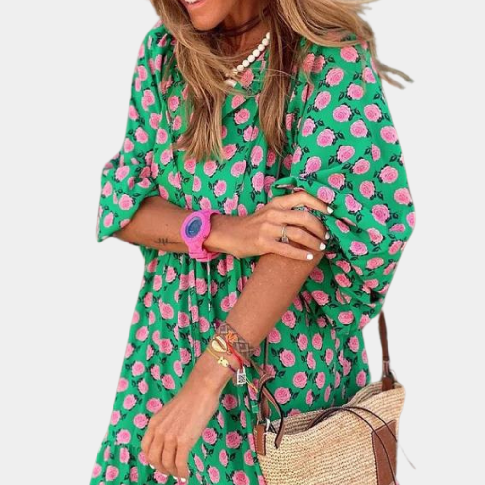 Capri Jurk | Maxi Relaxed Fit | Retro Bloemenprint