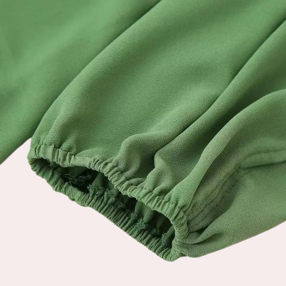 Details: Diepe V-hals en golvende zoom voor extra beweging