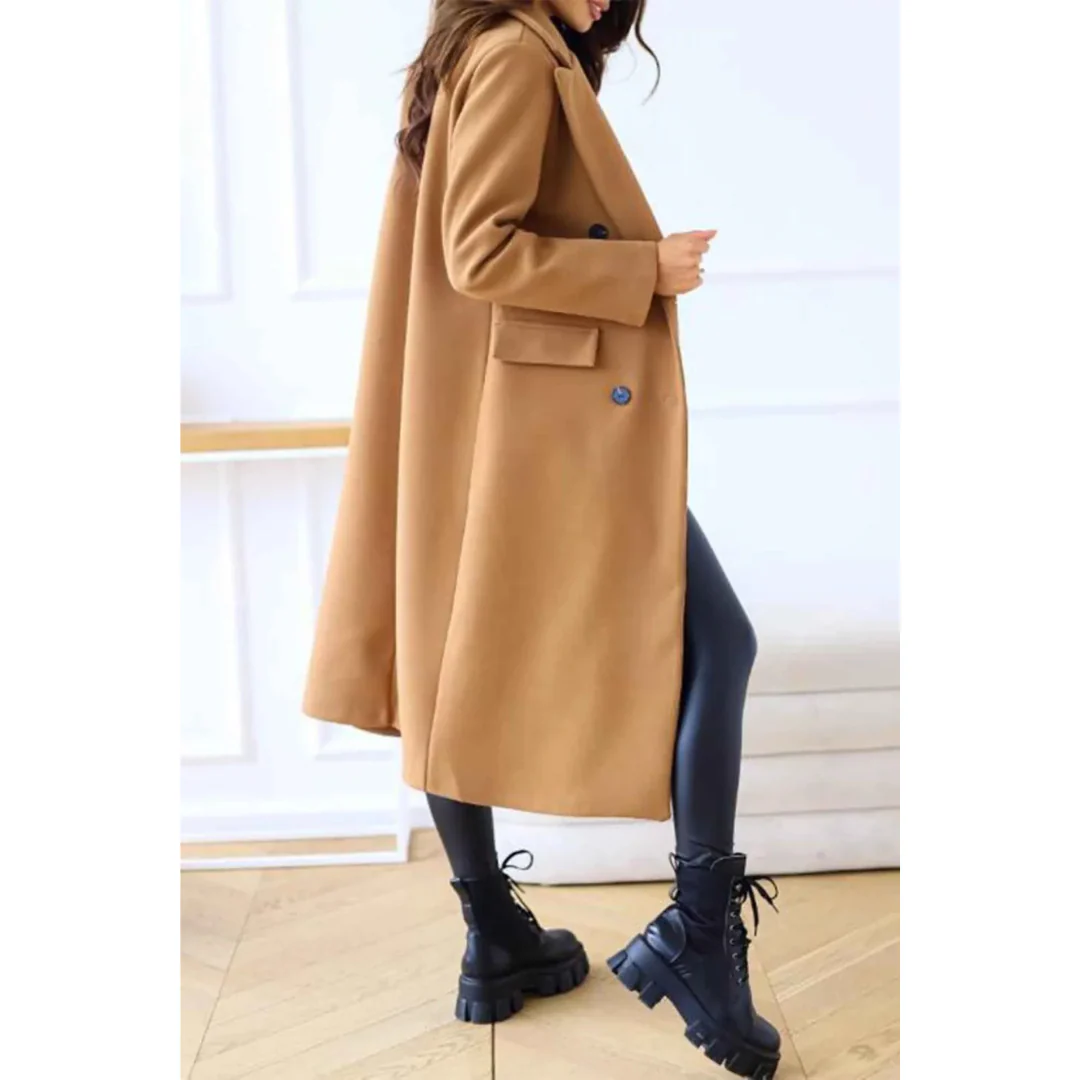 Details: Klassieke kraag, dubbele knopenrij en steekzakken