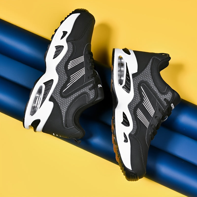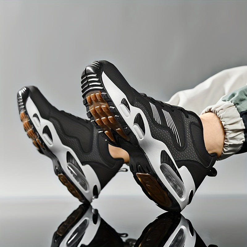 Deze sneakers combineren een robuust design met innovatieve technologie voor maximale ondersteuning en grip. De dikke zool met luchtkussen zorgt voor uitstekende demping, terwijl het ademende bovenwerk je voeten fris houdt. Perfect voor sportieve activiteiten en casual streetwear outfits.