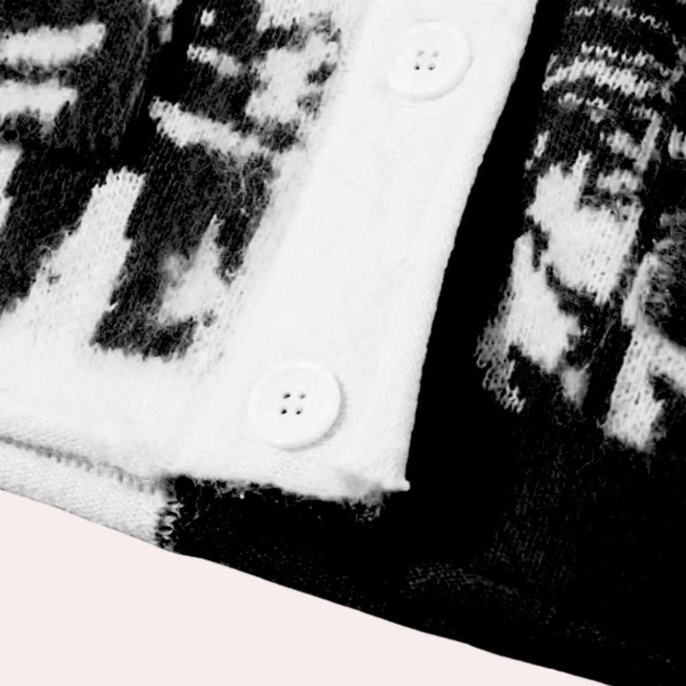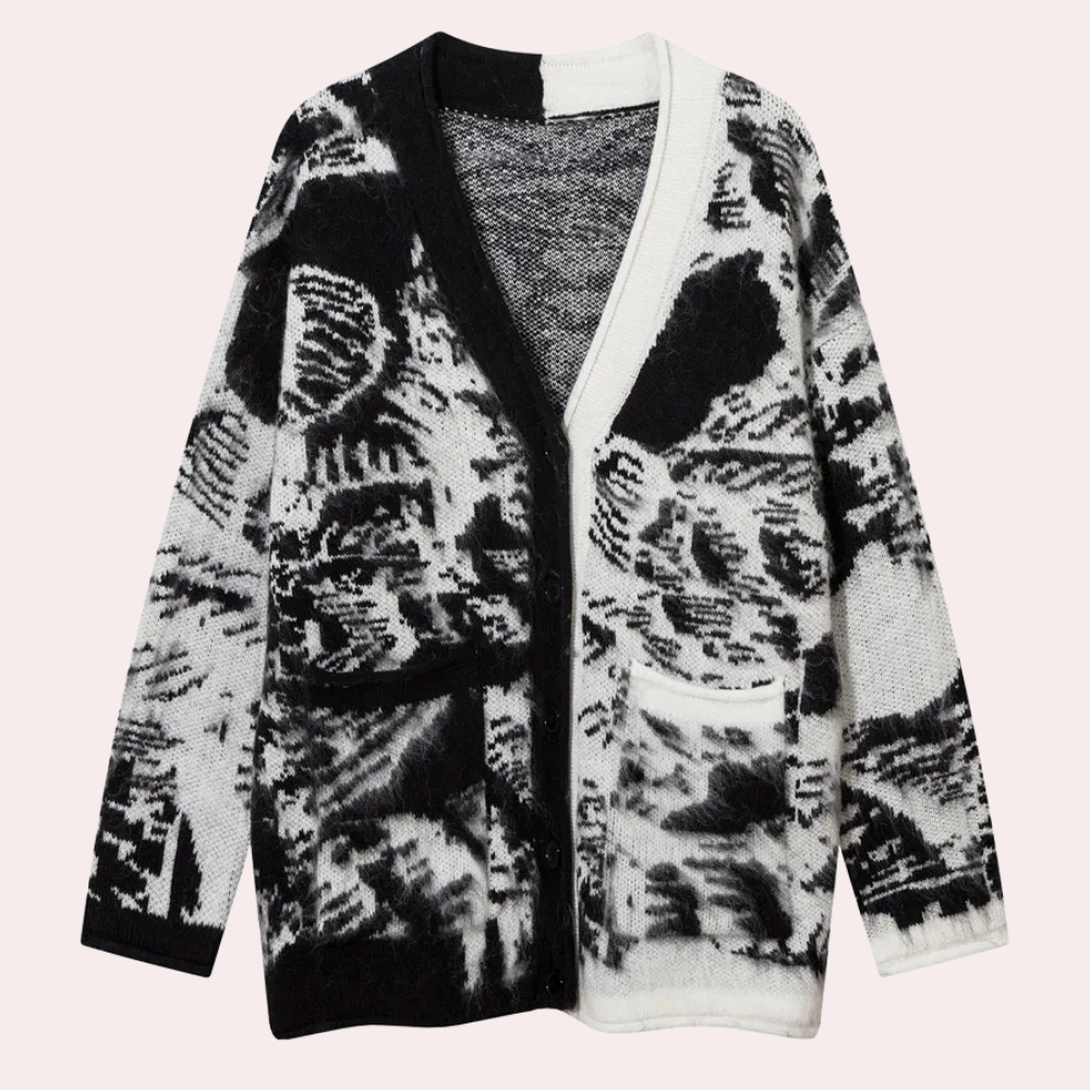 Dit unieke gebreide vest tilt jouw streetwear game naar een hoger niveau. De abstracte, bijna schilderachtige print zorgt voor een edgy uitstraling, terwijl het zachte breisel ultiem draagcomfort garandeert. De relaxte pasvorm en diepe V-hals maken het ideaal om te dragen over casual basics of juist als statement piece.