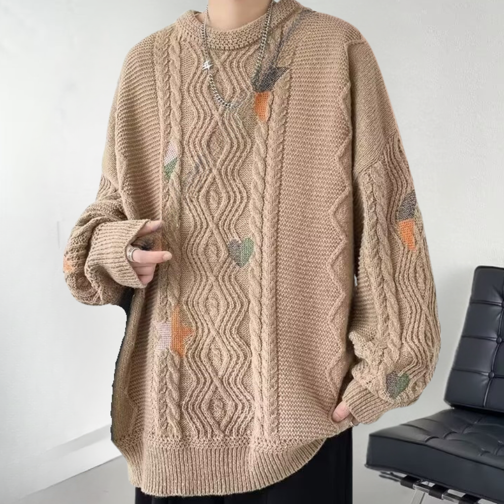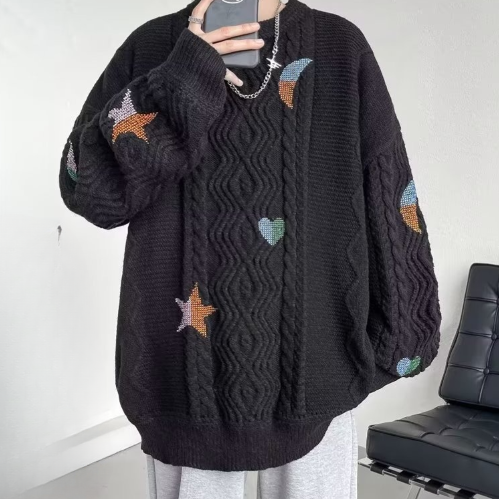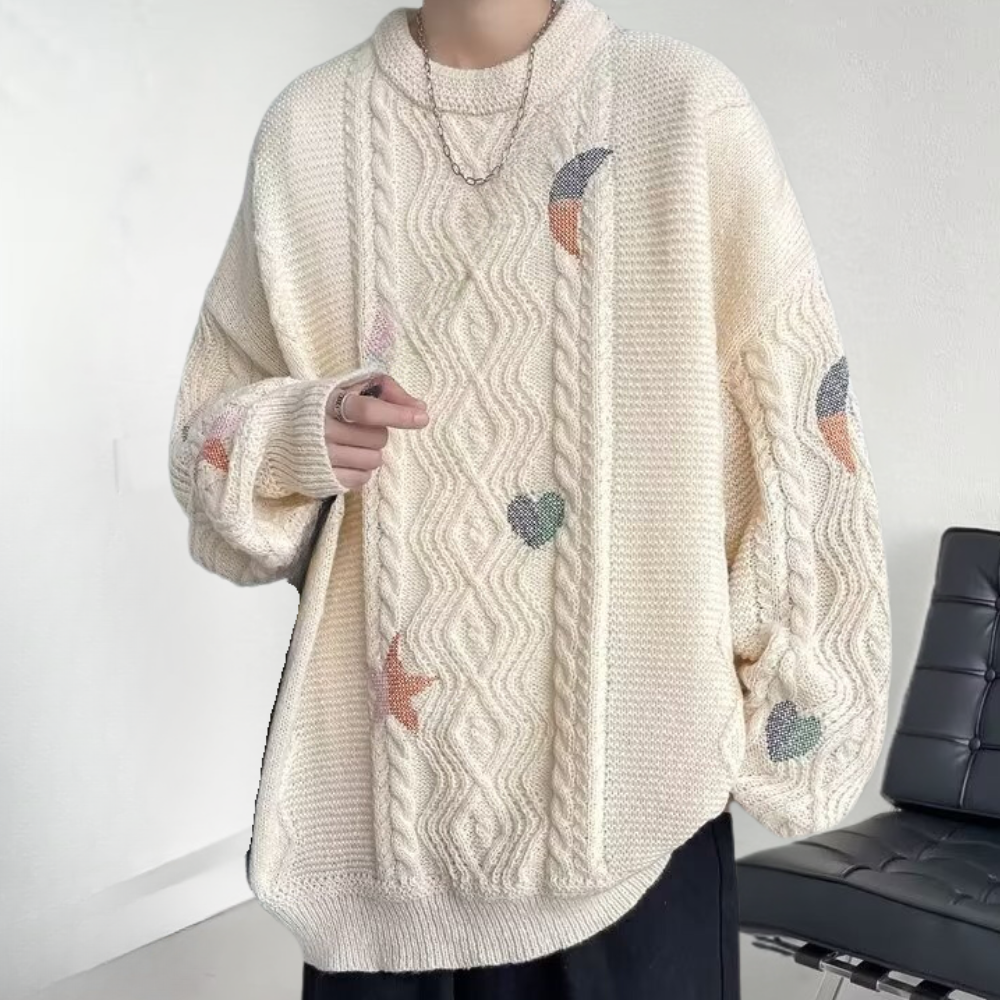 Heren Gebreide Oversized Trui | Sterren & Hartjes Design | Cozy Streetstyle Knitwear