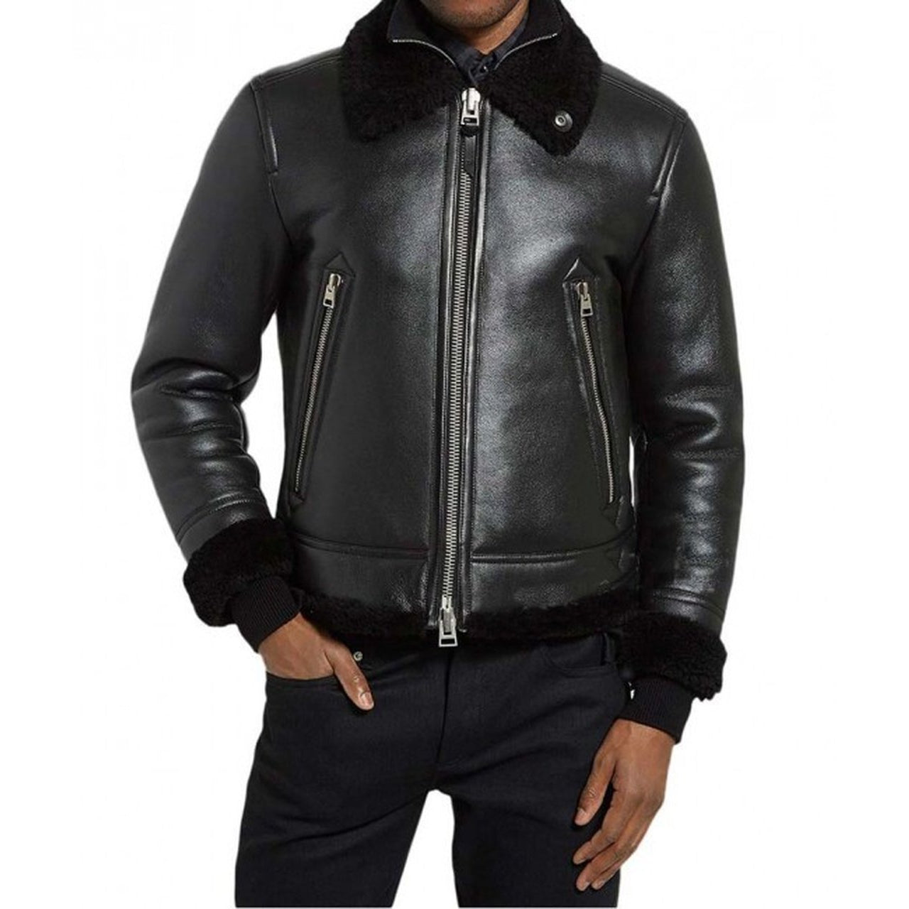 Heren Shearling Look Winterjas | Kunstleer met Bontvoering | Aviator Stijl