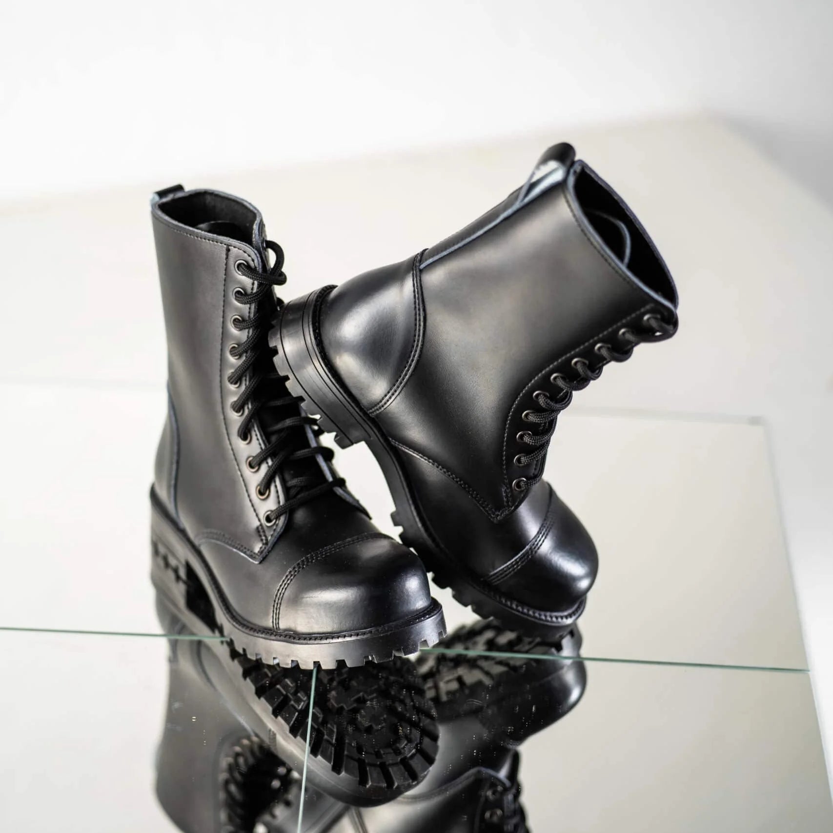 Heren Veterboots | Zwart Leerlook | Urban Combat Style