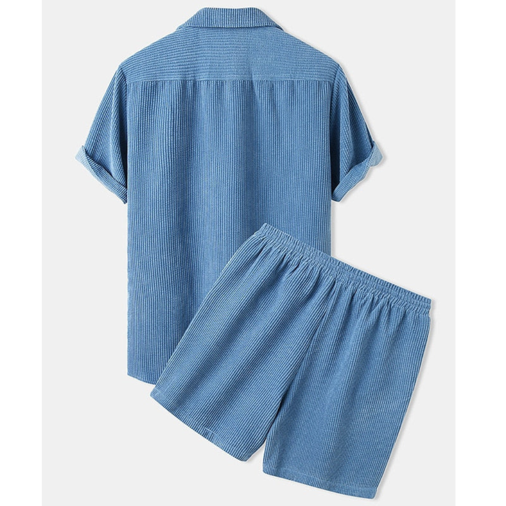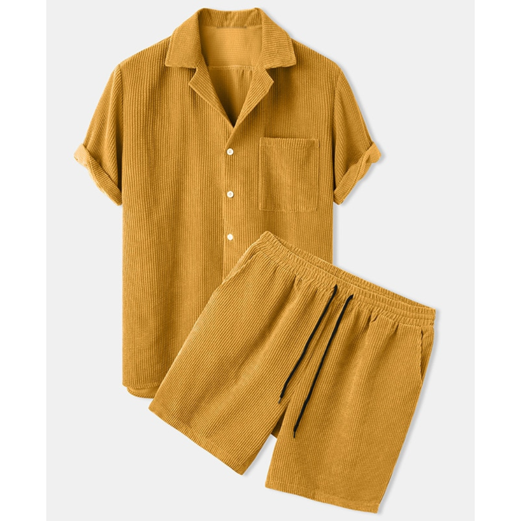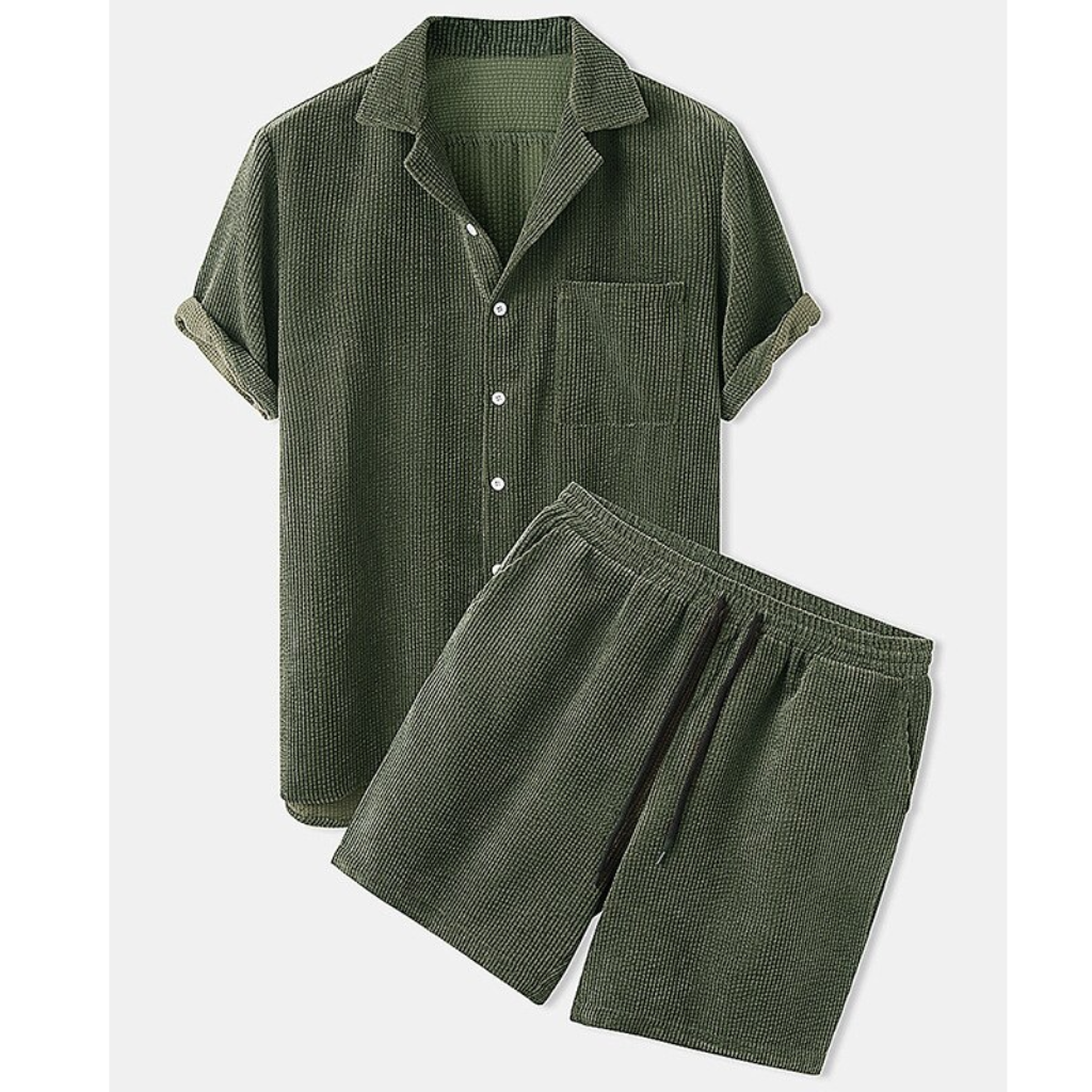 Heren Zomer Set van Ribstof | Kraagshirt & Shorts | Casual Textuur Look