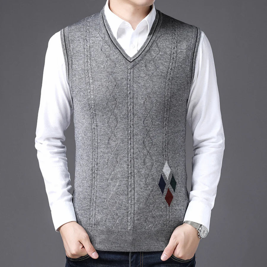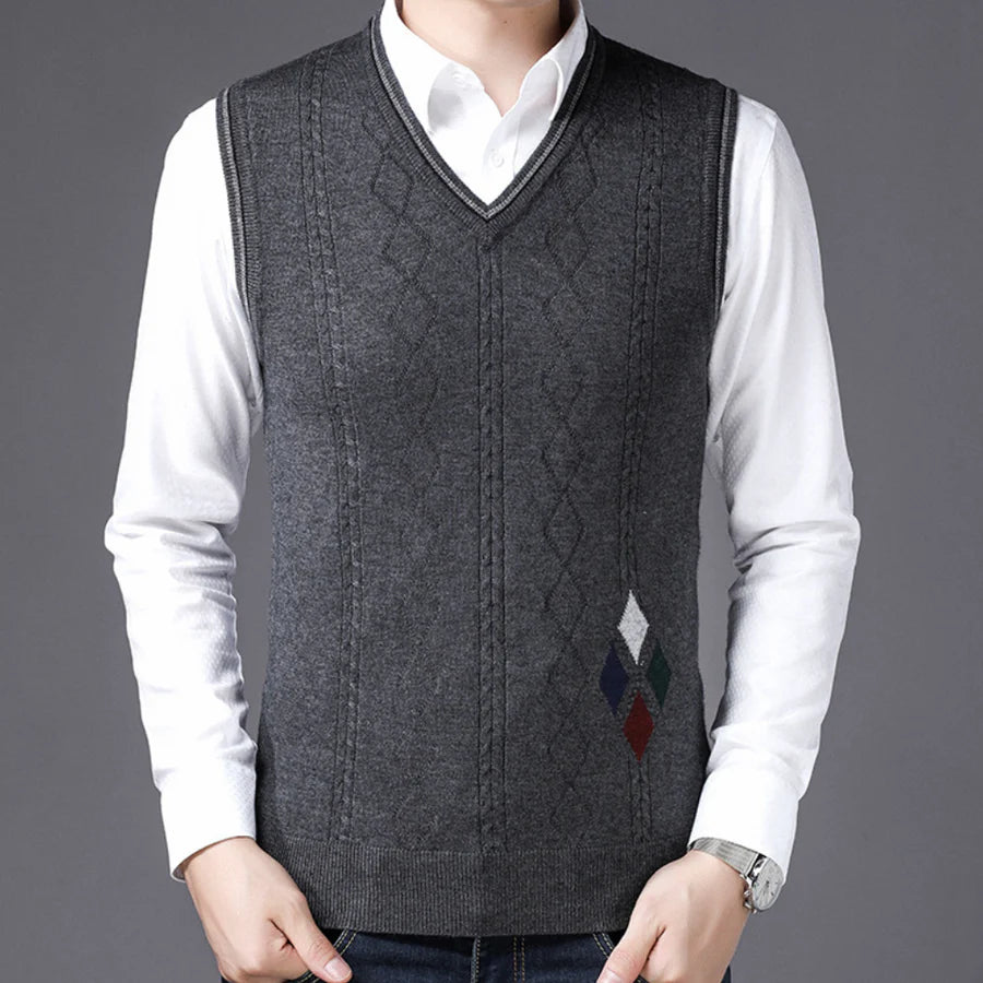 Herenspencer met V-hals en Diamantmotief | Klassiek Gebreid | Office & Casual Look