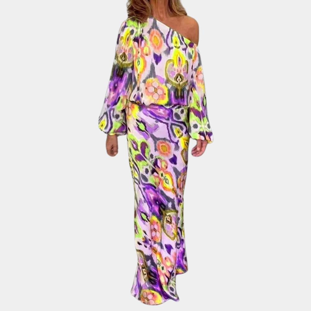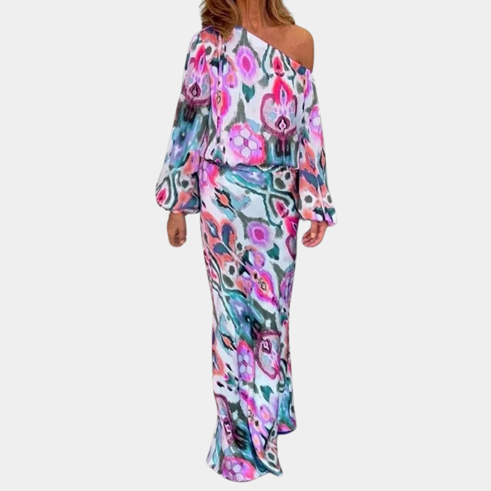 Mariska Set | Satijnen Co-ord | Psychedelische Print & One-Shoulder