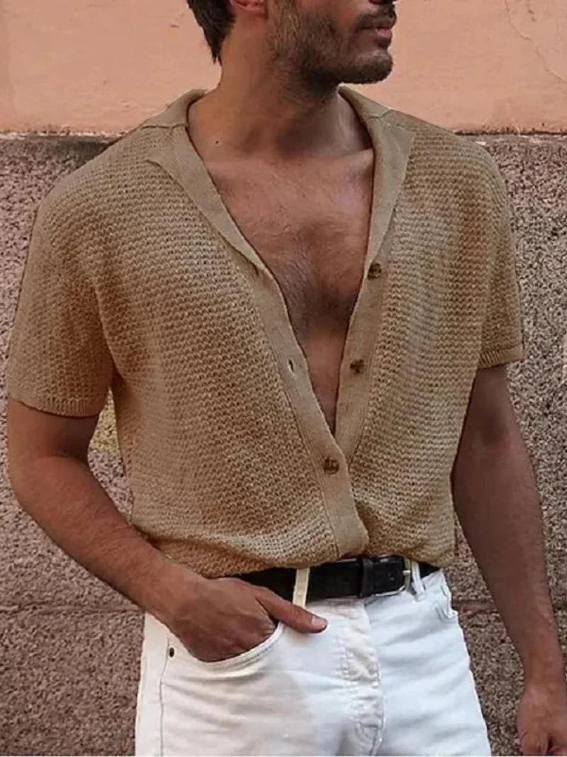 Het Riviera Knit Shirt is de ultieme zomerfavoriet voor een relaxte, stijlvolle look. Dit luchtige overhemd is gemaakt van een gehaakte stof die zowel ademend als trendy is. Met zijn diepe V-hals, korte mouwen en losse pasvorm straalt dit shirt een nonchalante boho-vibe uit – perfect voor stranddagen, festivals of een zwoele zomeravond.