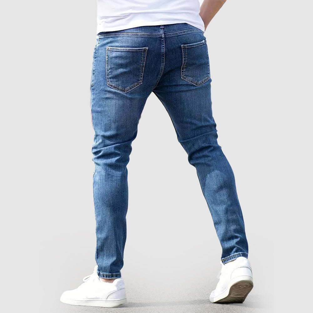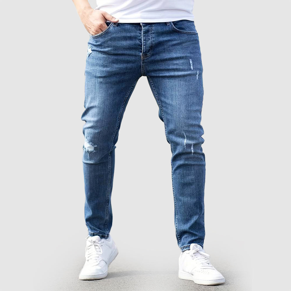 Deze jeans hebben een comfortabele pasvorm en zijn voorzien van een klassieke rits- en knoopsluiting. De broek is voorzien van diverse zakken die praktische opbergruimte bieden. Het ontwerp heeft subtiele scheuren, waardoor de jeans een moderne, licht versleten look krijgen. Het materiaal is robuust en garandeert een lange levensduur.