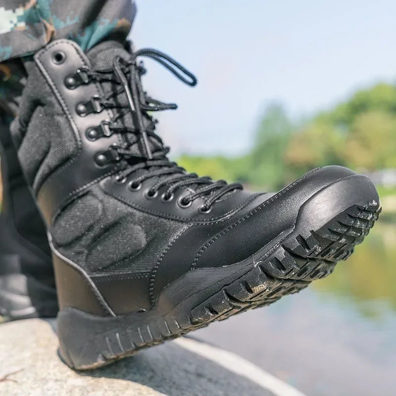 Deze tactische outdoor laarzen met hoge schacht zijn ontworpen voor maximale ondersteuning, grip en duurzaamheid. Perfect voor wandelingen, werk, survivaltochten of dagelijks gebruik bij nat en ruw terrein. Het ademende mesh in combinatie met het robuuste kunstleer biedt comfort én bescherming, ongeacht de omstandigheden.