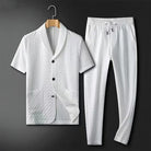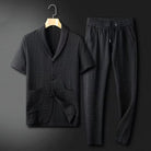 De Urban Luxe Set is een moderne en stijlvolle outfit die casual comfort combineert met een verfijnde uitstraling. De set bestaat uit een kortmouw shirt met een unieke textuur en een slim fit broek met elastische tailleband. Perfect voor wie een verzorgde look wil zonder in te leveren op gemak.