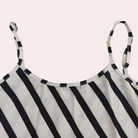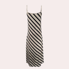 De Urban Stripes Slip Dress is een moderne essential met een elegante eenvoud. De diagonale zwart-witte strepen creëren een flatterend silhouet, terwijl de verstelbare spaghettibandjes en soepele stof zorgen voor luchtig comfort. Deze midi-jurk straalt minimalistische klasse uit en is perfect voor zowel casual dagen als stijlvolle avondjes uit.