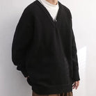 Deze zwarte V-hals gebreide trui biedt de perfecte balans tussen casual en chic. Het zachte breimateriaal zorgt voor ultiem comfort, terwijl de relaxte pasvorm moeiteloos over elke outfit valt. Dankzij de diepe V-hals is deze trui ideaal om te combineren met een coltrui of een overhemd voor een gelaagde look. Perfect voor zowel dagelijkse outfits als stijlvolle gelegenheden.