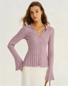 Valeria Cardigan | Geribd Knit | Uitlopende Mouw