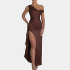 Vesper Dress | One-Shoulder Satin | Hoge Split & Drapage