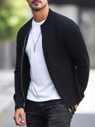Dit zwarte herenvest met ritssluiting en een subtiele ribstructuur is de ideale toevoeging aan je dagelijkse garderobe. Gemaakt van een zachte, ademende katoenmix en voorzien van een moderne bomberkraag, geeft dit vest jouw outfit een clean en tijdloos accent.