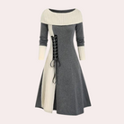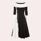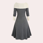 Vienna Knit Dress | Midirok met Korsetdetail | Contrasterende Boorden & Off-Shoulder