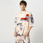 Met een all-over artistieke print geïnspireerd op vintage postkaarten en Oosterse landschappen, is deze co-ord set een echte conversation starter. Het luchtige materiaal en de oversized fit zorgen voor ultiem comfort, terwijl de kleurencombinatie van crème, navy en rood een uitgesproken zomerstatement vormt. Ideaal voor vakantie, festivals of casual stadsdagen met een creatieve twist.