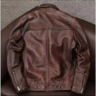 Deze vintage geïnspireerde leren jas combineert een robuuste look met ultiem draagcomfort.