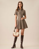 De Vintage Plaid Dress is een ode aan klassieke elegantie met een moderne twist. Het retro ruitpatroon in warme bruine tinten en de flatterende skatervorm creëren een speels maar verfijnd silhouet. De kraag en knoopsluiting geven de jurk een preppy uitstraling, perfect voor zowel casual dagen als stijlvolle gelegenheden.