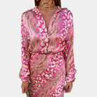 Viva Dress | Satijnen Midi Jurk | Metallic Dierenprint & Knoopdetail