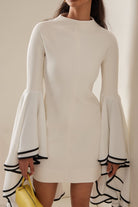 Volare Jurk | Minimalistisch Wit | Dramatische Roesmouwen