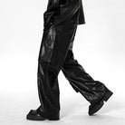 Zwarte Faux Leather Cargo Broek | Oversized Street Edge | Bold Utility Vibe